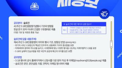 공지사항 · [공고] 제41주년 5·18민중항쟁기념행사 슬로건 전국공모 (재공모) ◆ 공모분야 ㅇ 슬로건 : 41주년 5·18민중항쟁기념행사 기조와 방향을 한글 문구 … 2021-03-17
