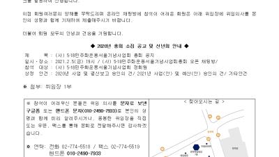 사업회계보고 · 2020년 결산자료 일시: 2021년 1월 17일(일) 12:00 장소: (사)518서울기념사업회 사무실 참석자: 장신환감사, 이남감사, 최수동회장, 임태경(전)상임이사, 정선임 행정팀장 내용:… 2021-01-22