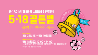 공지사항 · 5.18기념청소년대회 '5.18골든벨' 울려라 민주의 종! - 5.18기념 제15회 서울청소년대회 < 5.18골든벨 > (5.18기념 제15회 서울청소년대회) 대회의 참가 신청이 마감되었습니다. … 2019-03-05