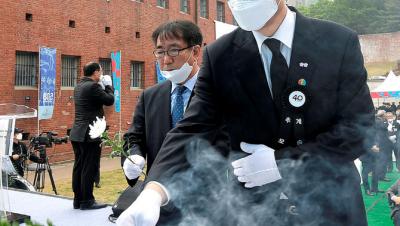 [이데일리 김태형 기자] 문석진 서대문구청장이 18일 오전 서대문형무소역사관에서 열린 ‘제40주년 5.18민주화운동 서울기념식’에 참석해 헌화하고 있다. (사진=서대문구)…