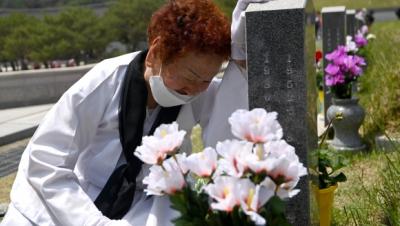 17일 광주 5.18 묘역에서 열린 추모제에 참석한 유가족들이 눈물을 흘리며 희생자를 추모하고 있다. 2020.5.17 [서울신문] [서울포토]5.18 묘역 참배객들 (seoul…