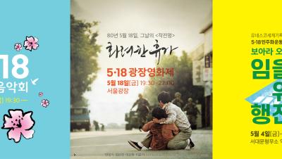 공지사항 · 5.18민주화운동 서울행사 5•18민주화운동 제 38주년 기념 5•18평화음악회, 광장영화제, 전시회 안내 - 5•18평화음악회 일시: 2018년 5월 17일(목) 19:30~ 장소: 서울광장 - 5•18광장영화제 일시: 2018년 5월… 2018-03-28